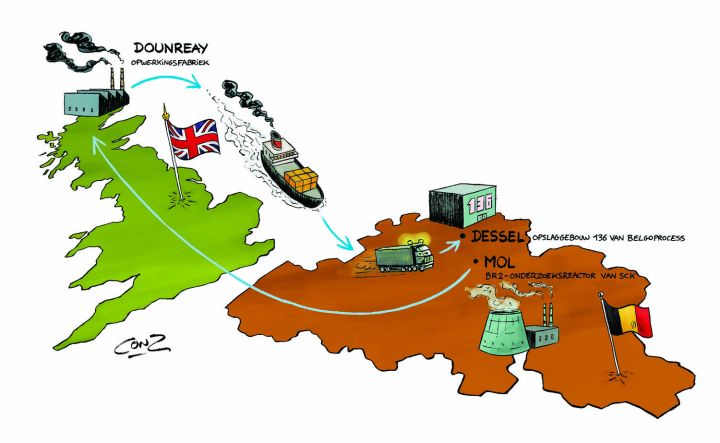 Deze week is er opnieuw een transport met Belgisch radioactief afval aangekomen vanuit Dounreay in Schotland. In de periode 2012-2014 zijn er 21 dergelijke transporten gepland. Deze transporten gaan een stuk over zee en een stuk over de weg.